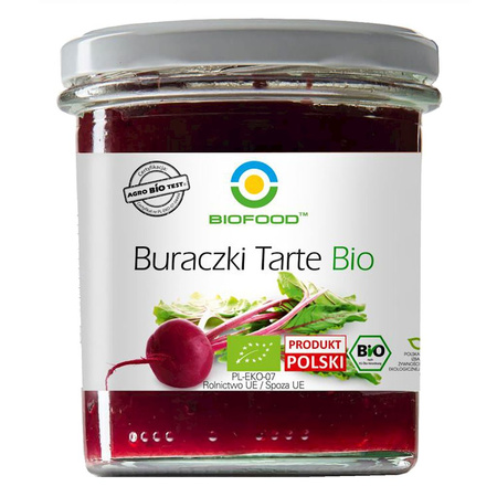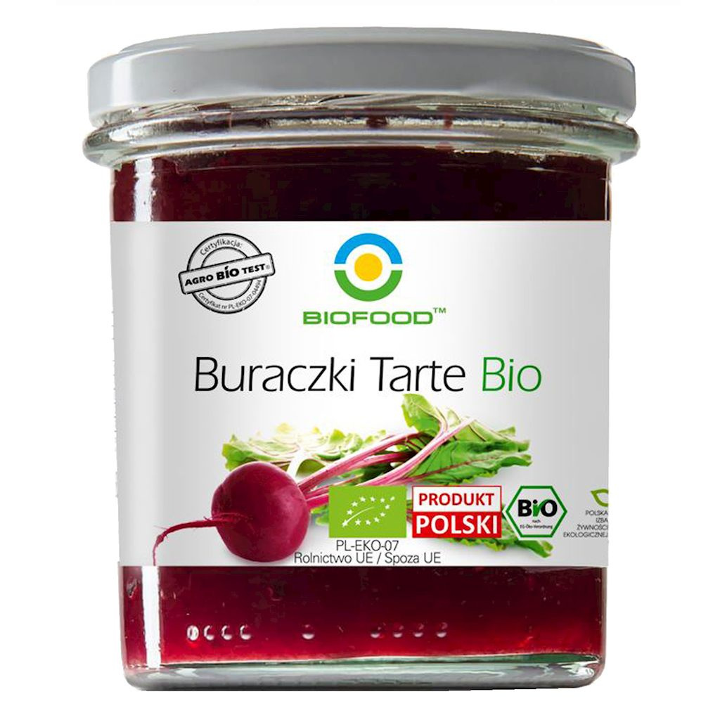 - Buraczki tarte bezglutenowe BIO, idealny dodatek do potraw, naturalny smak i ekologiczne składniki.