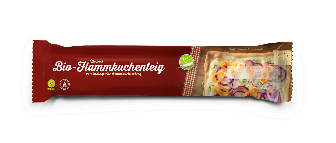 - Ekologiczne ciasto na tartę flambée, idealne do przygotowania alzackiego dania z boczkiem i cebulą.