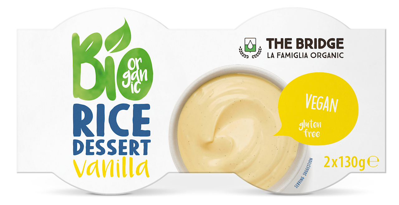 • Bezglutenowy deser ryżowy o smaku waniliowym, wegański, ekologiczny, idealny na zdrową przekąskę.