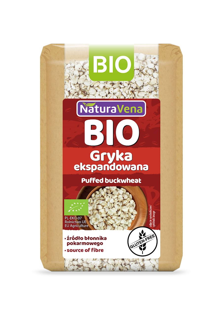 - Ekologiczna gryka ekspandowana, idealna jako zdrowa przekąska lub dodatek do potraw. Bezglutenowa, 100% naturalna.