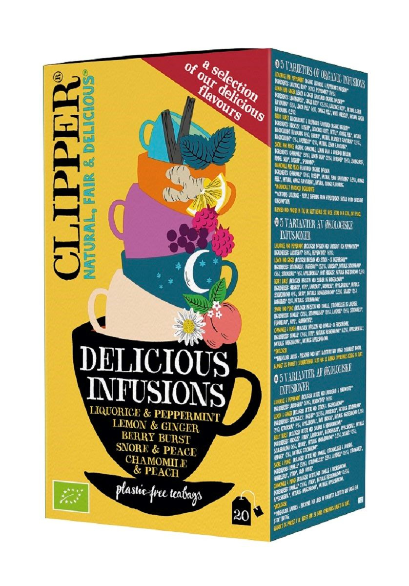 Składniki: hibiskus*, dzika róża*, korzeń lukrecji*, pokrzywa*, skórka z pomarańczy*, naturalny aromat czarnej porzeczki (4 %), cykoria*, naturalny aromat malinowy* (1,5 %), czarna porzeczka* (1 %), malina* (1 %), naturalny aromat cytrynowy*. (*certyfikowany składnik ekologiczny)