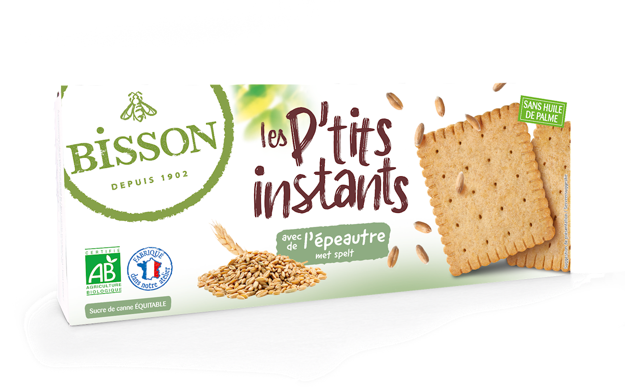 Rozpocznij dzień w stylu Bisson! Ciastka są wytwarzane z francuskiej mąki pszennej i ORKISZOWEJ, zapewniając delikatny orzechowy smak i lekką chrupkość. Bez oleju palmowego, z cukrem trzcinowym Fair trade i objęte programem 1 % dla Planety - te ciasteczka to idealna mała przyjemność, która szanuje zarówno Twoje zdrowie, jak i planetę. Zdrowa przekąska na każdą porę dnia!
