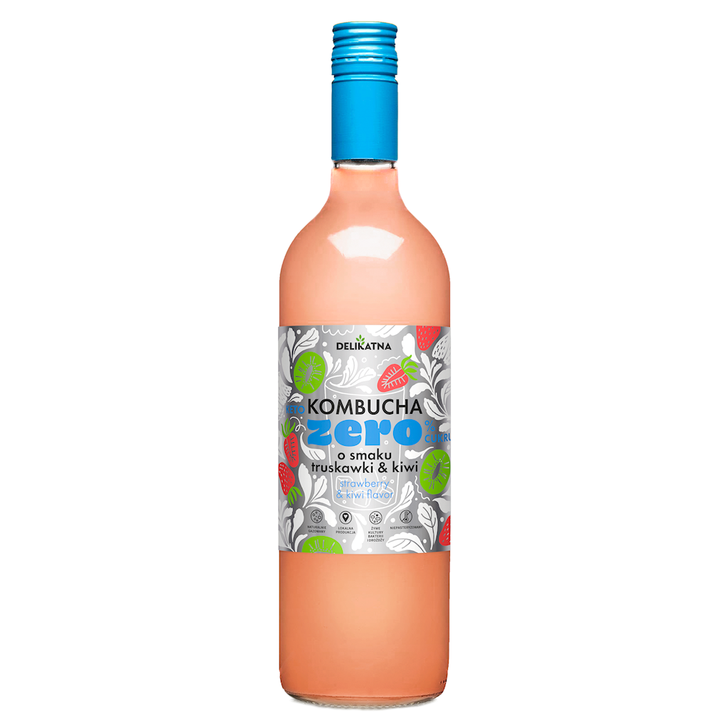 - Orzeźwiająca kombucha o smaku truskawki i kiwi, zero cukru, naturalnie musująca, idealna na każdą okazję.