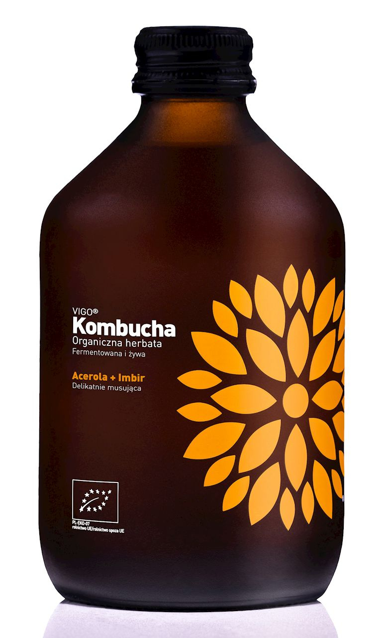- Orzeźwiająca kombucha z acerolą i imbirem, bogata w witaminę C, bezglutenowa, ekologiczna, idealna na każdą porę.