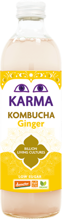 Karma Kombucha to orzeźwiający, niepasteryzowany napój herbaciany, powstający w procesie fermentacji, dzięki czemu jest bogaty w probiotyki oraz miliardy żywych kultur bakterii. Jest to jedna z najbardziej certyfikowanych kombuch na rynku – 100 % ekologiczna, pochodząca z rolnictwa Demeter oraz posiadająca certyfikat Fair For Life. Rozkoszuj się doskonałą harmonią wyjątkowych smaków i niską zawartością cukrów w każdym łyku. Produkt zawiera śladowe ilości alkoholu (<1,2 % obj.).