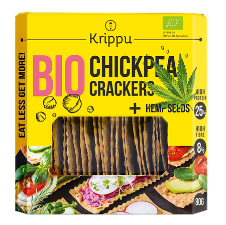 Krakersy z ciecierzycy KRIPPU zawierają ponad 20% białka, co plasuje je wśród produktów o najwyższej zawartości białka pod względem wartości odżywczej.