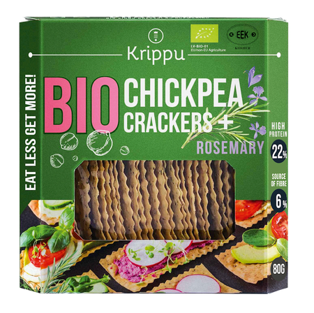 Krakersy z ciecierzycy KRIPPU zawierają ponad 20% białka, co plasuje je wśród produktów o najwyższej zawartości białka pod względem wartości odżywczej.