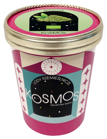 Ekologiczne lody z herbatą Matcha marki KOSMOS wykonane metodą rzemieślniczą z najwyższej jakości składników.