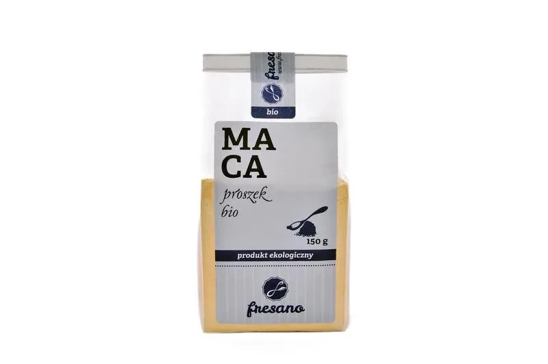 - Maca proszek bio (150 g) to naturalny suplement o korzystnym wpływie na energię i wytrzymałość. Doskonały dodatek do koktajli.