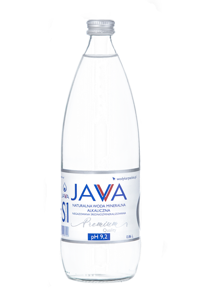- Naturalna woda mineralna alkaliczna JAVA, pH 9,2, średniozmineralizowana, w szklanej butelce 860 ml. Zdrowy wybór!