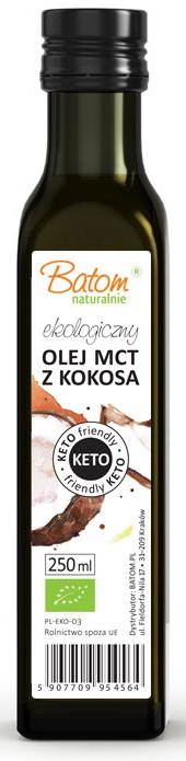 Olej MCT to znakomite uzupełnienie codziennej diety w kwas kaprylowy oraz kwas kaprynowy. Kompozycja średniołańcuchowych kwasów tłuszczowych: kwas kaprylowy: 60 %, kwas kaprynowy: 40 %. Obydwa te kwasy zaliczane są do tzw. średniołańcuchowych kwasów tłuszczowych (z angielskiego medium chain triglycerides - MCT). Znajduje zastosowanie do: napoi, sałatek, shake czy smoothie. Polecany w diecie ketogenicznej oraz dla osób aktywnych fizycznie. Zrównoważony sposób żywienia oraz zdrowy tryb życia są niezbędne do prawidłowego funkcjonowania organizmu.