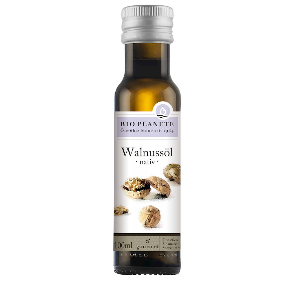 - Ekologiczny olej z orzechów włoskich, bogaty w omega-3, idealny do sałatek i deserów. Tłoczony na zimno.