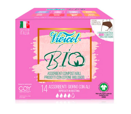 Seria produktów VIVICOT BIO - to pierwsze włoskie podpaski higieniczne, które są całkowicie biodegradowalne i kompostowalne. To bardzo etyczne produkty, które pozwalają zmniejszyć ilość odpadów i zwiększyć wykorzystanie produktów odnawialnych. Podpaski są nie tylko biodegradowalne, ale też w pełni kompostowalne, również w warunkach domowych. Oznacza to, że mogą być po użyciu umieszczone w domowym kompostowniku. To samo dotyczy owijki, która wyglądem przypomiana folię, a w rzeczywistości została wykonana ze skrobi kukurydzianej. Pudełko kartonowe pochodzi z recyklingu i nadaje się do ponownego przetworzenia.