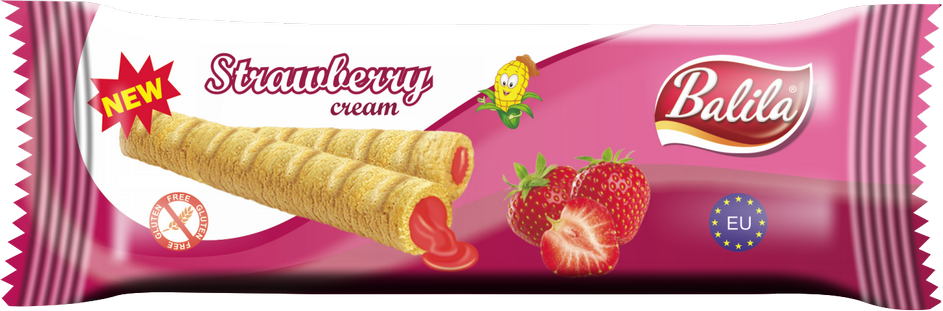 Rurki Kukurydziane z Kremem o Smaku Truskawkowym Bezglutenowe (24 szt x 18 g)