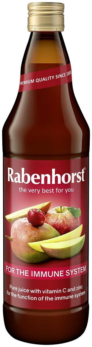 Aby nasz układ odpornościowy działał sprawnie, nasz organizm potrzebuje odpowiedniej ilości witaminy C i cynku. Ponieważ organizm nie jest w stanie sam wytworzyć tego minerału, a jego zasoby są ograniczone, należy go regularnie dostarczać poprzez zbilansowaną i zróżnicowaną dietę. Z soczystych jabłek, dojrzałych w słońcu mango i cennych wiśni aceroli, produkujemy sok najwyższej jakości, który jest wzbogacony witaminą C i cynkiem, aby wspierać układ odpornościowy. Witamina C i cynk przyczyniają się do prawidłowego funkcjonowania układu odpornościowego.